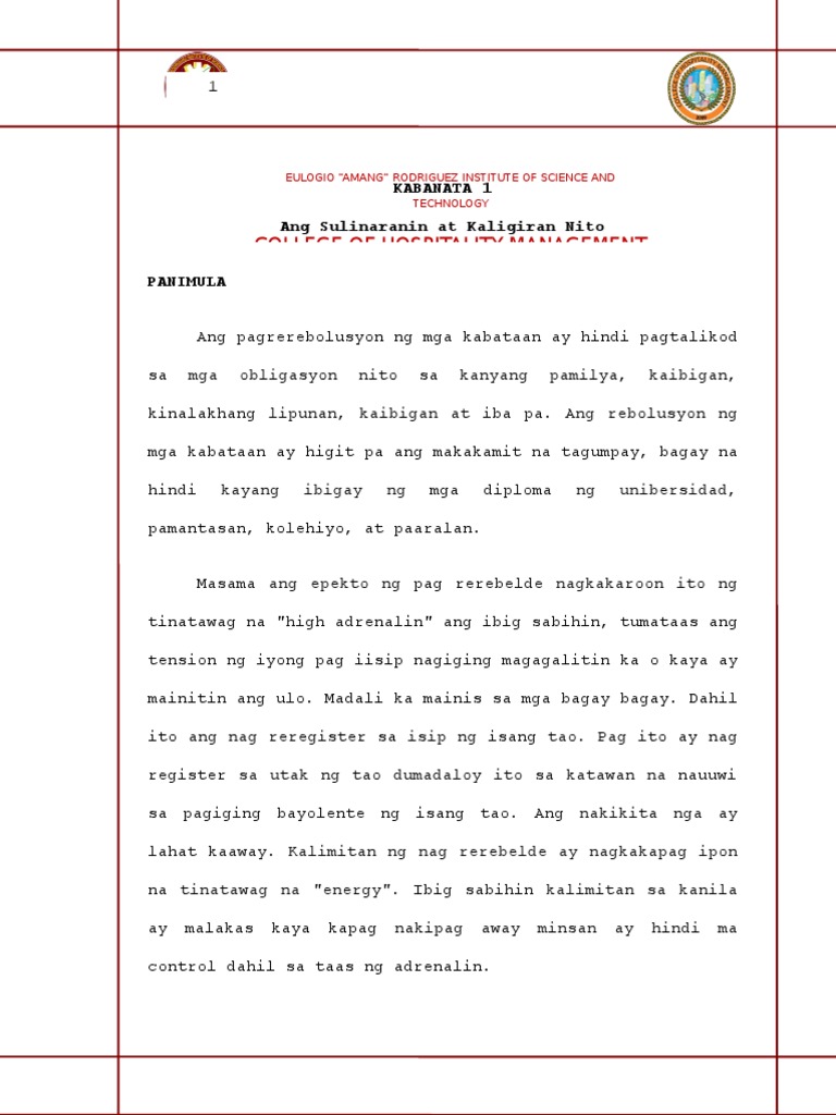 Isang Pag Aaral Sa Dahilan Ng Pagrerebelde Ng Kabataan