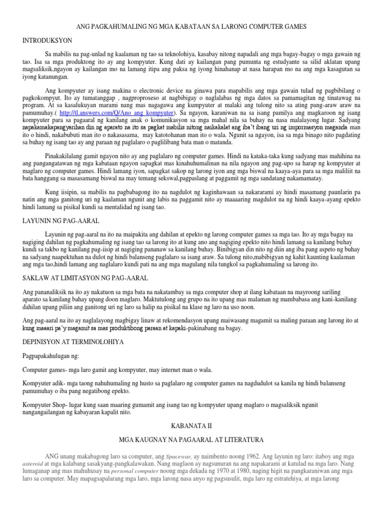 Ang Pagkahumaling Ng Mga Kabataan Sa Larong Kompyuter Geyms