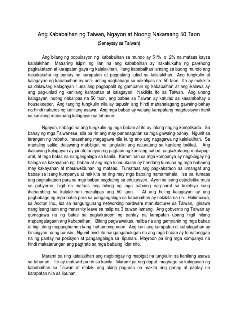 Ang kababaihan ng taiwan. Ngayon at sa Nakalipas na 50 Taon Isinalin sa Filipino ni. 9222016 Lahat ng tao ay iniluwal sa mundong ito na walang kamalay-malay sa mga pangyayari sa paligid.