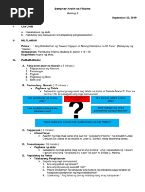 Ang kababaihan ng taiwan ngayon at noong nakaraang 50 taon isinalin sa filipino ni shiela C. Paglinang ng Talasalitaan Panuto. Kalagayan sa buhay ng nakakarami sa mamayan.