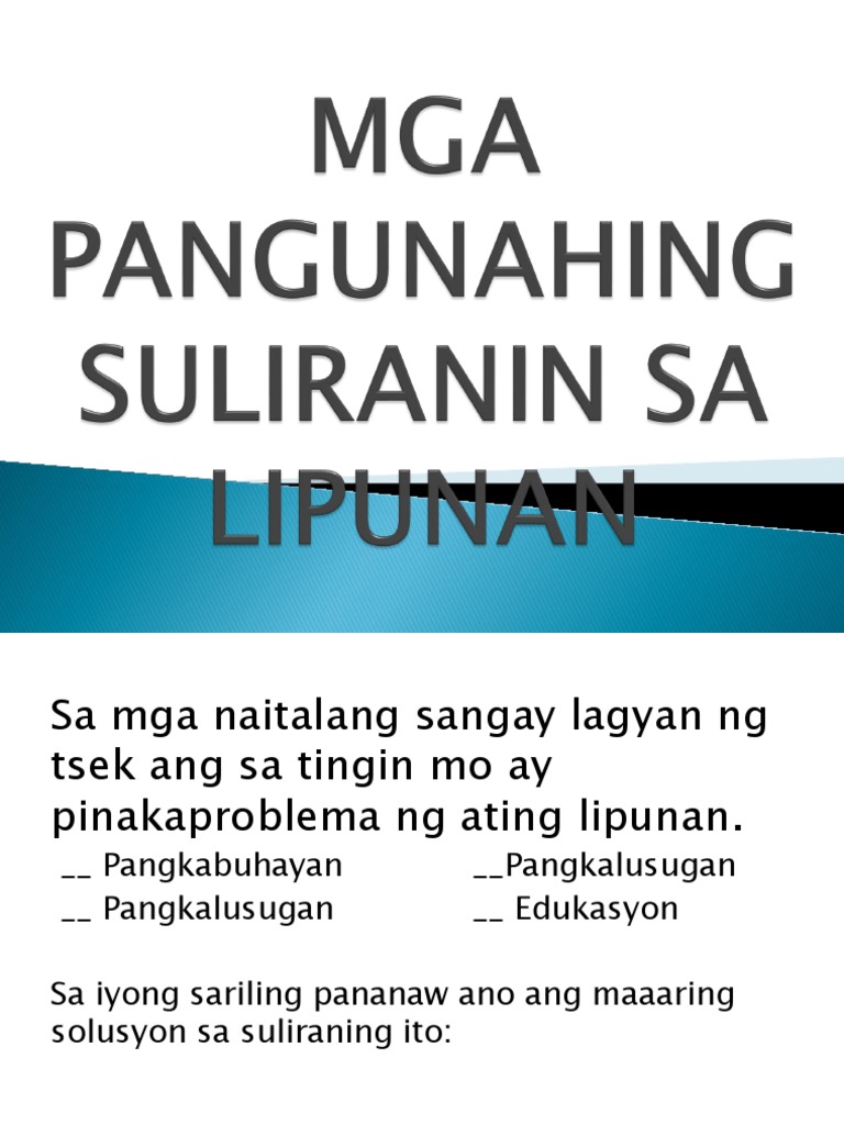 Isyung Panlipunan Mga Problema Sa Lipunan